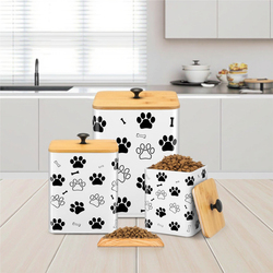 3 Pack Witte Luchtdichte Hondentraktatie Bewaarset Aanrecht Voor Huisdieren Pot Met Bamboe Deksels Metalen Hondentraktatie Potten