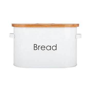 食品グレード粉体塗装楕円形モダンスタイル金属竹蓋収納キッチン用ブリキパン箱