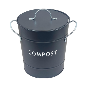 Balde de compostagem de cozinha com filtro de carvão galvanizado de metal portátil de 1,3 galões 5L, balde de compostagem de bancada com tampa