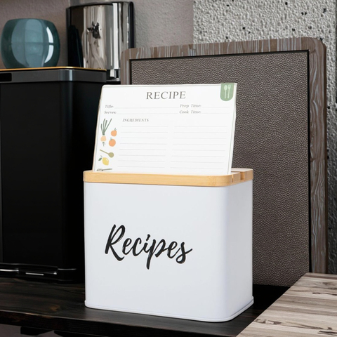 سحر بسيط عدد 4X6 بوصة الخشب الأبيض الألومنيوم أعلى مربع وصفة مجموعة هدايا حامل مستطيلي تنظيم مكتب الطعام