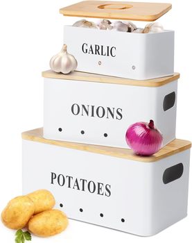 Patates soğan sarımsak depolama sebze hava sirkülasyonu ile 3 saklama kabı saklama kutusu seti