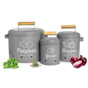 3 saklama kapları patates pot sarımsak pot soğan pot saklama kapları metal gri renk yapılmış